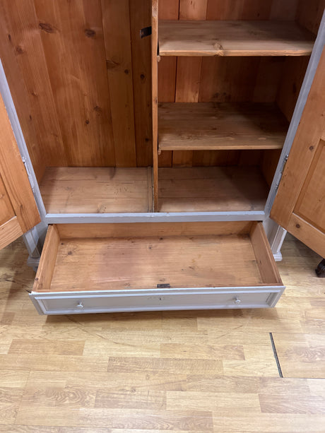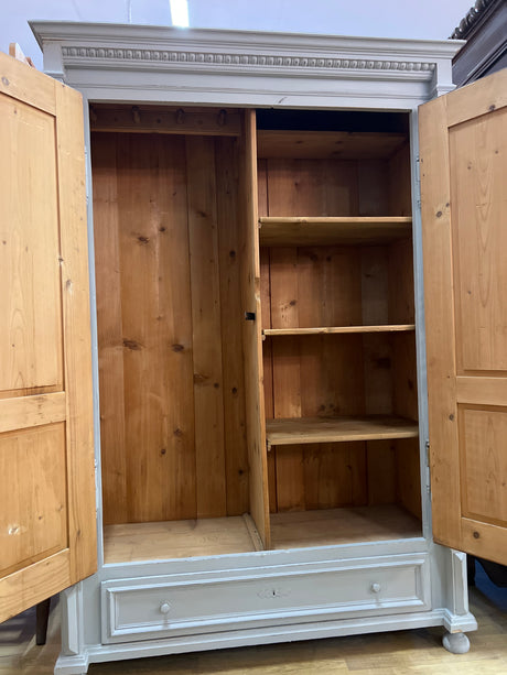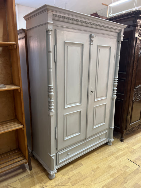 Upea helmenharmaa vaatekaappi L. 130cm, S. 55cm ja K. 191cm