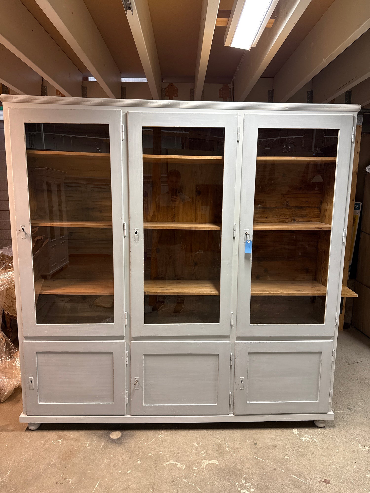 Upea kirja/astiavitriini 1910-20-luvulta Unkarista. Erittäin kaunis harmaan sävy ja upea patina. Selkeälinjainen ja siisti kaappi suoraan käyttöön.
