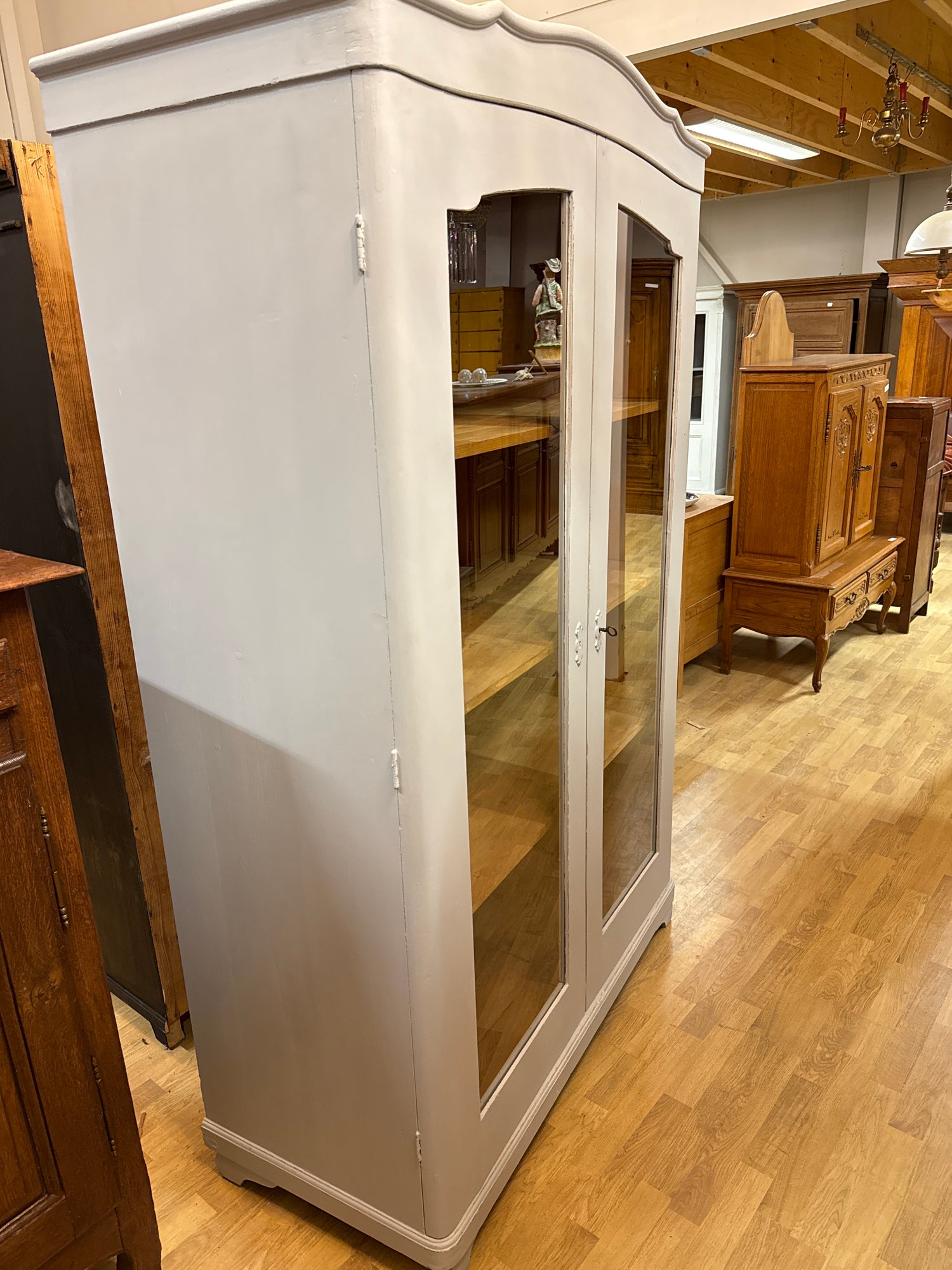 Huikea vaaleanharmaa vitriinikaappi kolmella tukevalla hyllyllä. Kaappi on siistikuntoinen, toimiva ja suoraan käyttöön valmis.