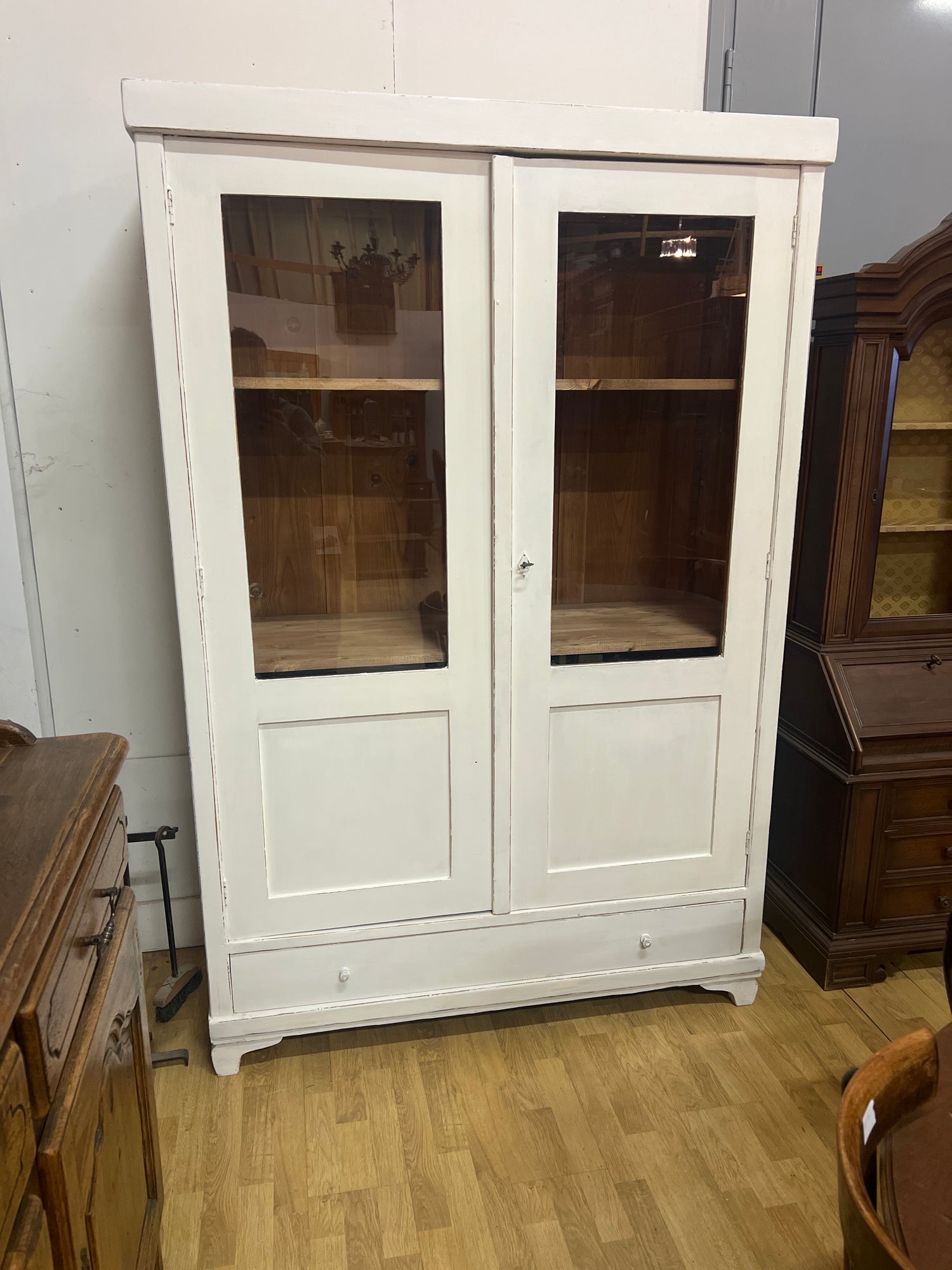 Yksinkertaisen tyylikäs, maasiivipuinen vitriinikaappi 1920-luvun unkarista. Kaappi toimii todella hienosti. Tukeva jämäkkä ja suoraan käyttöön valmis. Kaappiin voidaan pientä korvausta vastaan tehdä hyllyjä lisää.