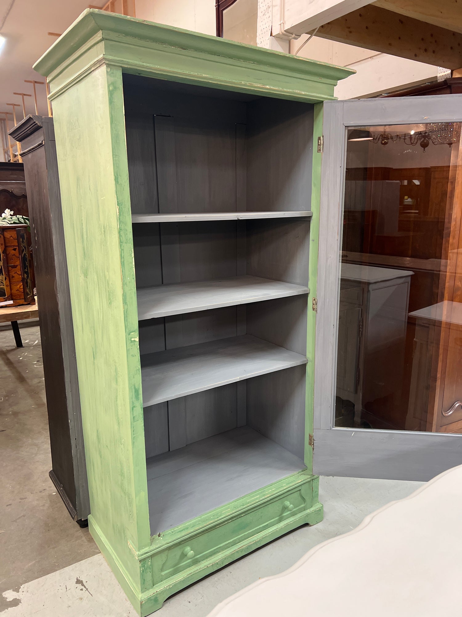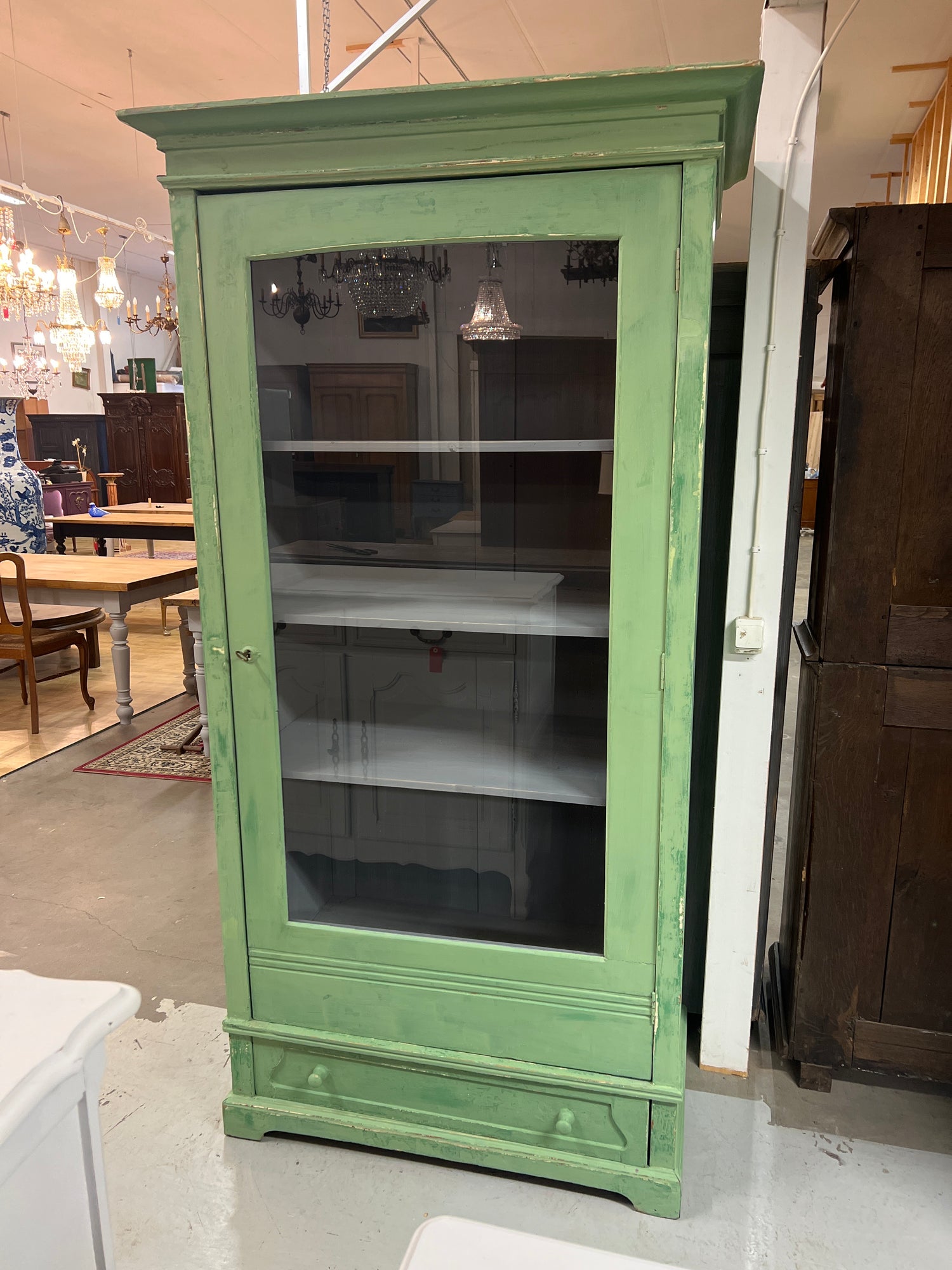Kaunis, suoralinjainen vitriinikaappi. Kirjakaapiksi, astiakaapiksi, arkistokaapiksi tai mihin vaan. Paksua puuta, tukeva, jämäkkä ja suoraan käyttöön valmis. Vitriinissä on iän tuomaa patinaa ja kulumaa. Kaikki toimii loistavasti, niinkuin pitääkin!