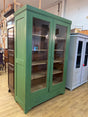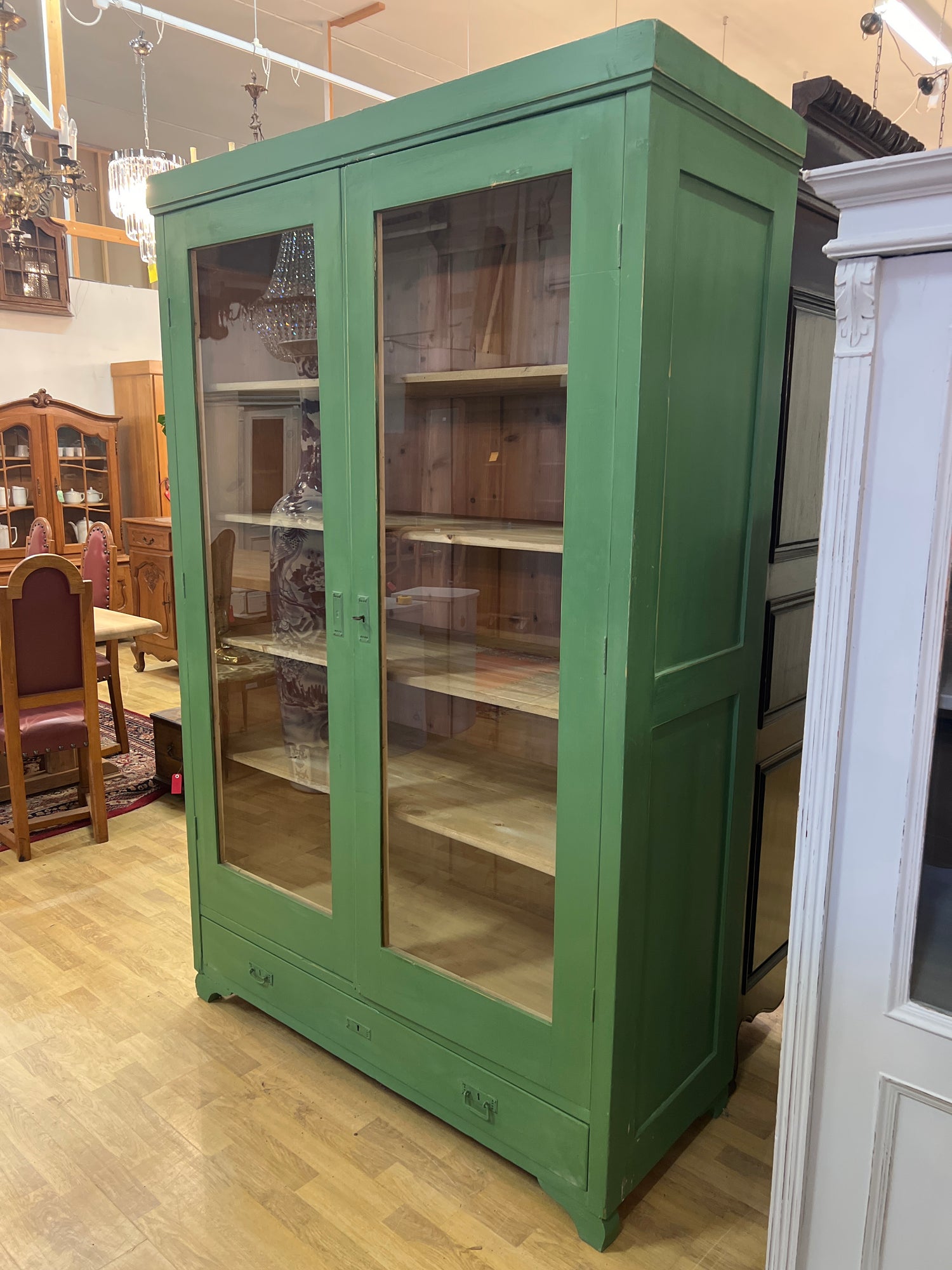 Todella kaunis, suoralinjainen vitriinikaappi! Trendikkäässä vihreässä sävyssä oleva 1920-luvun kaappi unkarista. Kaappi on todella tukeva, jämäkkä ja hyväkuntoinen. Kaapissa on iän tuomaa patinaa ja kulumaa. Kaikki toimii hienosti niinkuin pitääkin ja kaappin on suoraan käyttöön valmis. Tästä katseenvangitsija kotiin, mökille, työpaikalle tai minne vaan… Olkaa hyvät😍