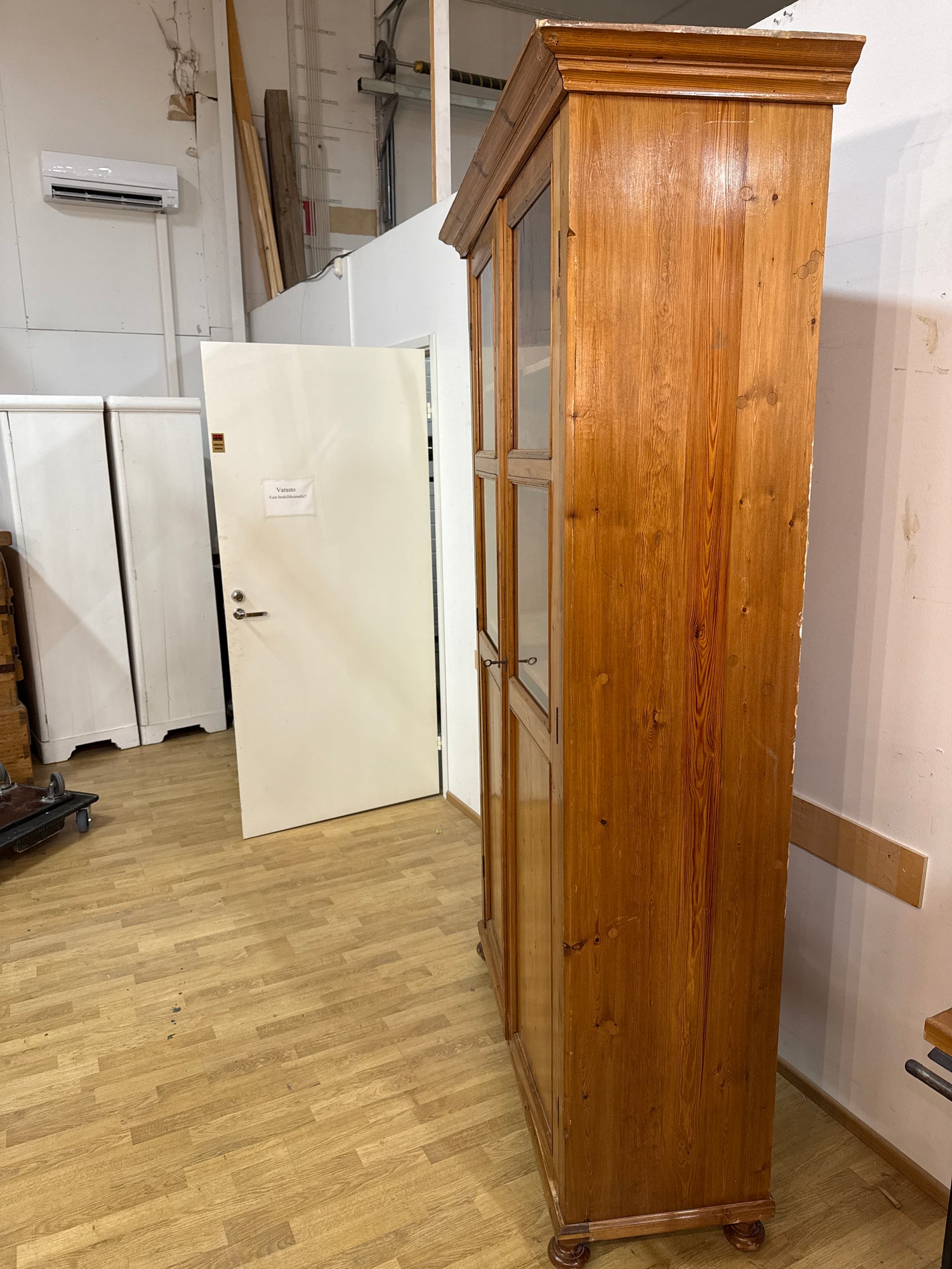Mahtava kotimainen vitriinikaappi joita erittäin harvoin tarjolla. Tämä vanha koulun kaappinakin toiminut vitriini on erinomainen valinta kotiin mökille tai työpaikallesi. Kaappi iästä ei ole tietoa, mutta se on vanha.