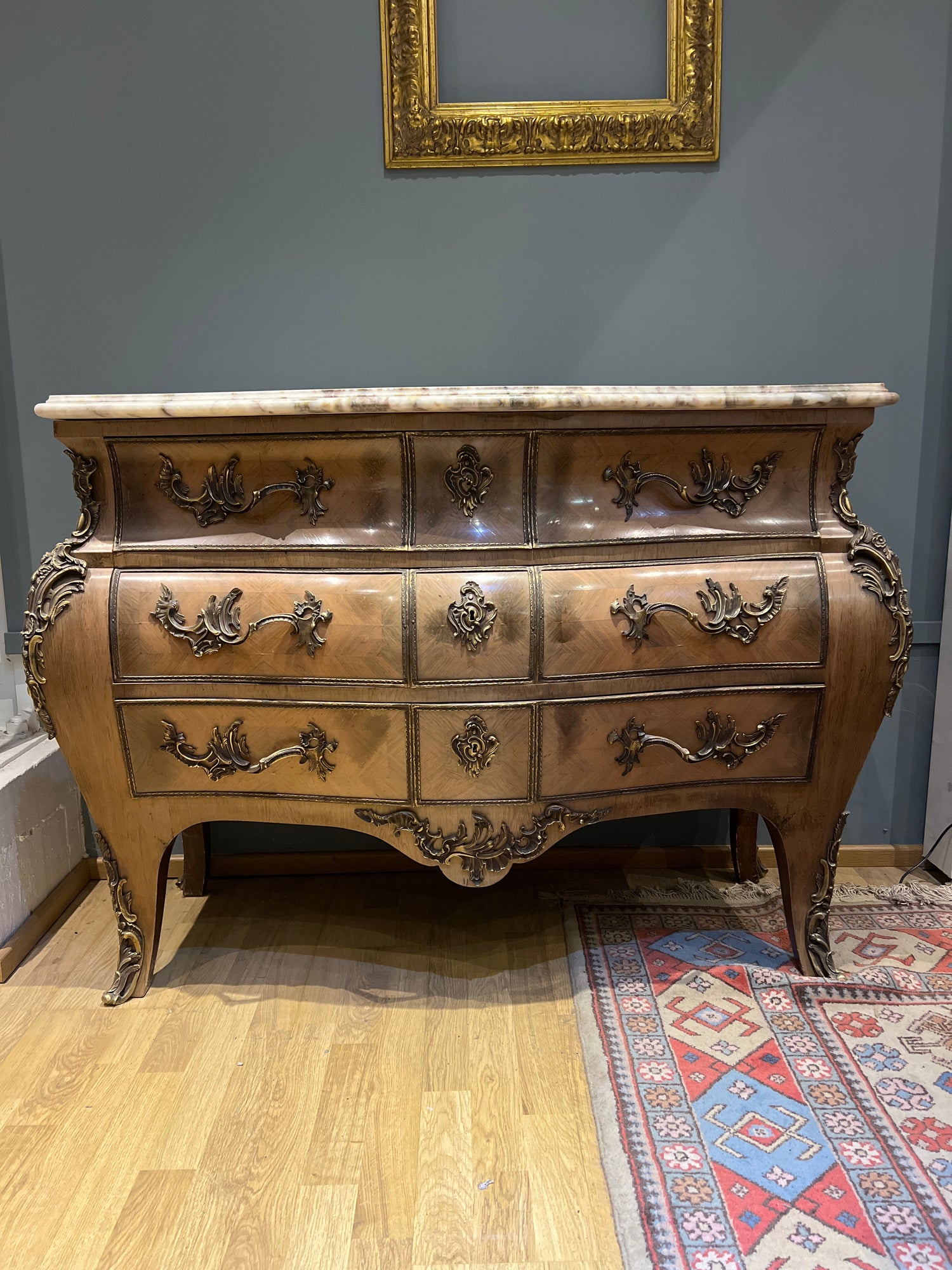 Upea italialainen mahasenkki kolmella vetolaatikolla. Upeat pronssi/messinki vetimet ja koristeet, lohenpystöliiyokset ja paksu marmori kivikansi. Todella hyin toimiva ja laadukas kaluste suoraan käyttöön.. Olkaa hyvät😍