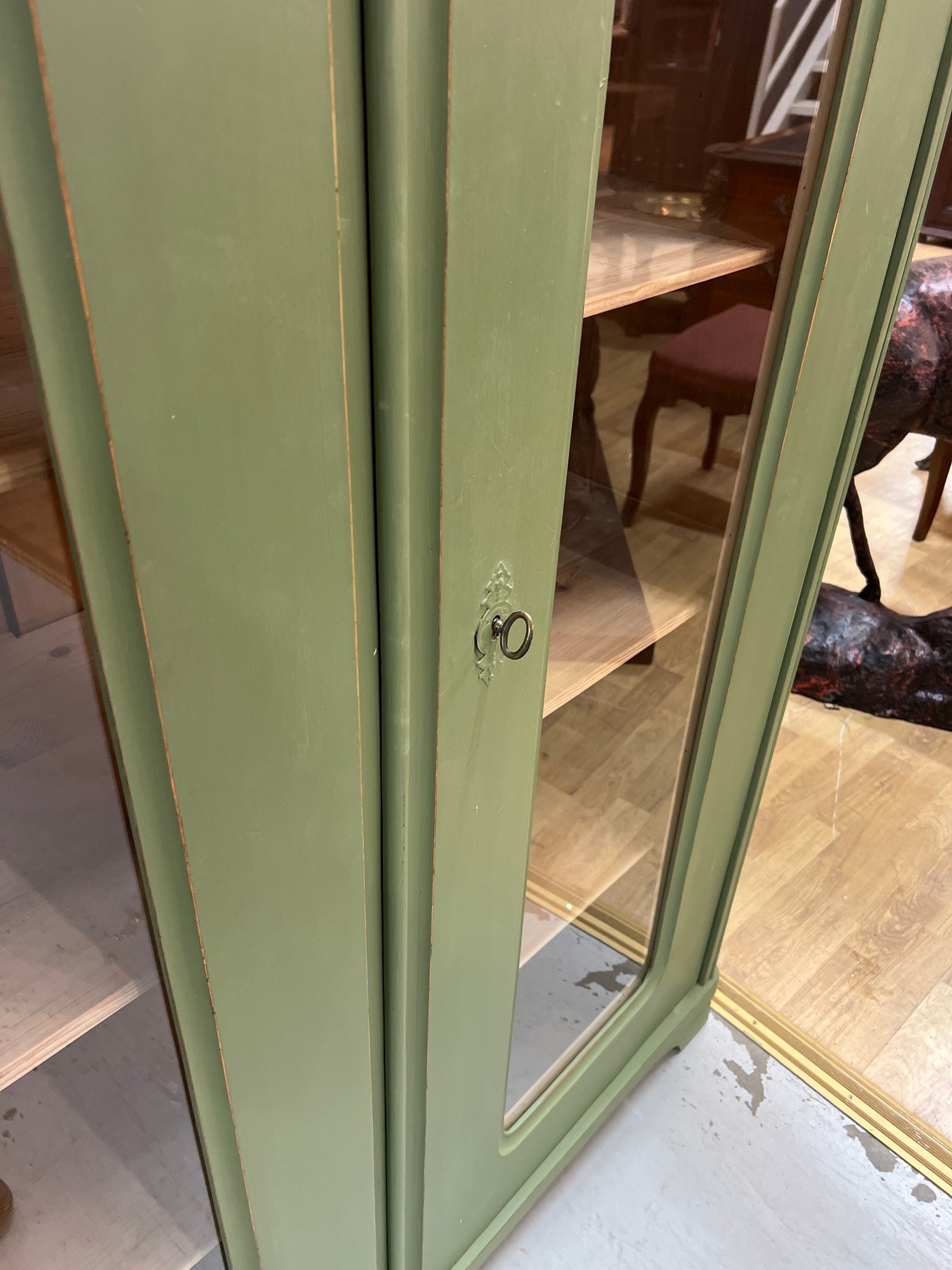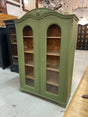 Kauniin vihreä vitriinikaappi kirjoille, astioille, koriste-esineille tai mille vaan.. Kaappi on 1920-luvun unkarista ja siinä on tällä hetkellä 4 hyllyä. Kaappi toimii todella hienosti ja on suoraan käyttöön valmis.
