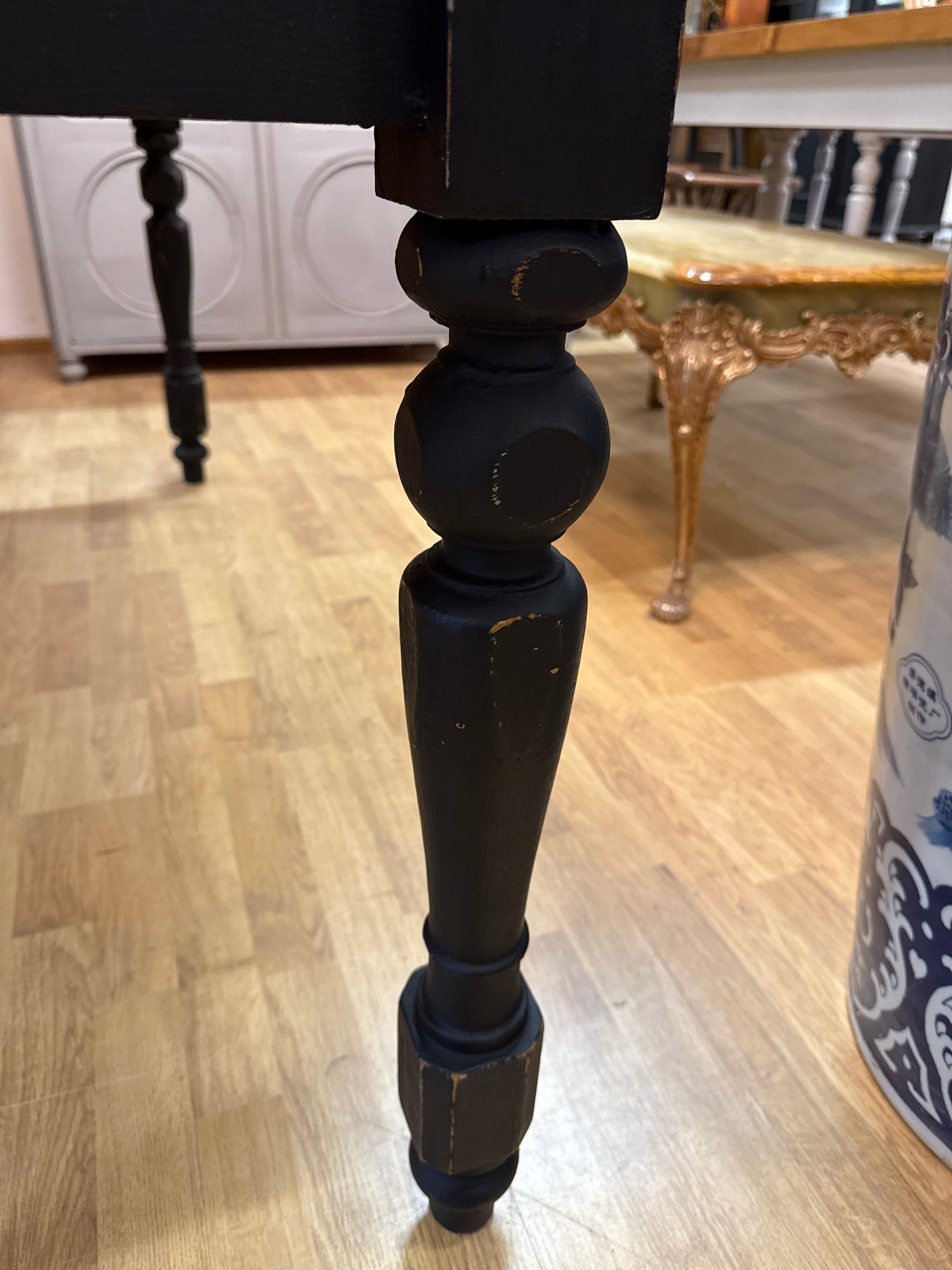 Upea Unkarista tullut mustajalkainen ruokapöytä, missä kaunista patinaa. Tämä upea pöytä sopii erinomaisesti monenlaiseen ympäristöön kuin käyttötarkoitukseen.