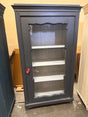 Upea tummansininen/siniharmaa vitriinikaappi kolmella hyllyllä. Kaappi on toimiva siisti ja hajuton. Toki pientä ajan tuomaa patinaa tästä satavuotiaasta kaapista löytyy.