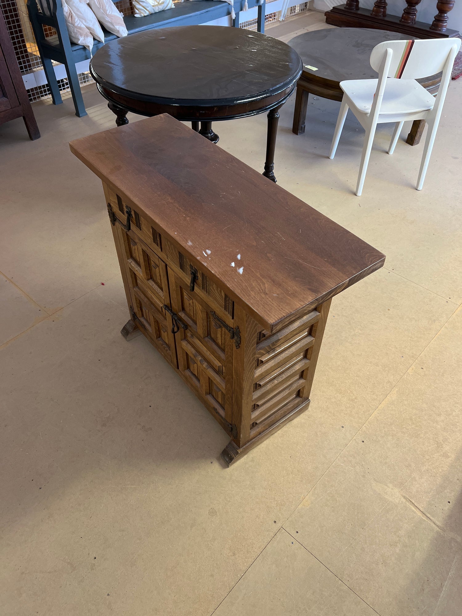 Komea tammilipasto😍 Vetolaatikot ja kaappiosa. Toimii hienosti! Lipastossa on iän tuomaa patinaa ja kulumaa..