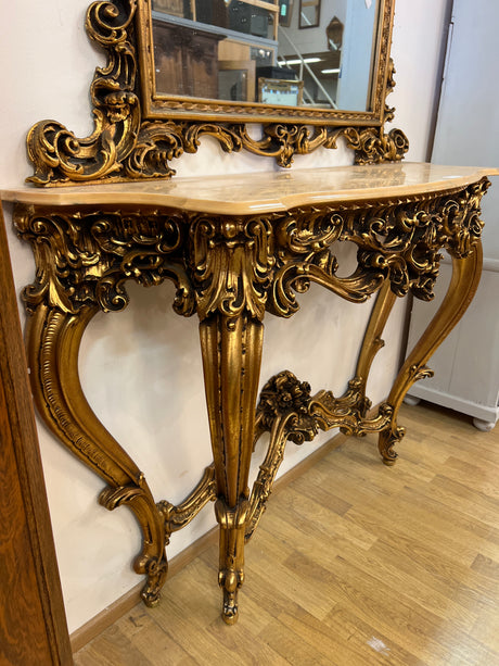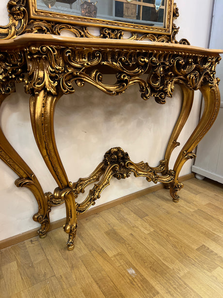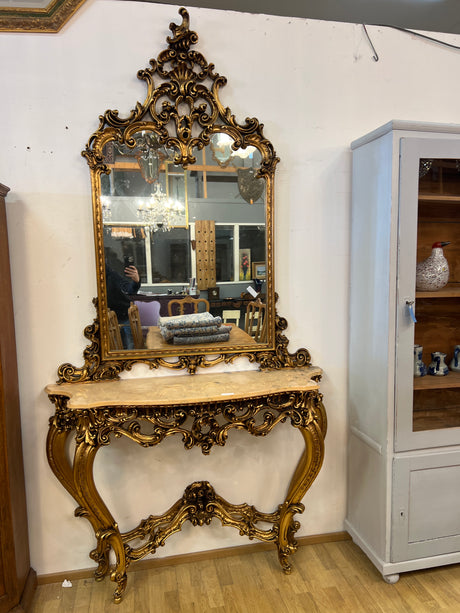 Huikea rokokoo konsolipeilipöytä L. 138cm, S. 41,5cm ja K. 258cm