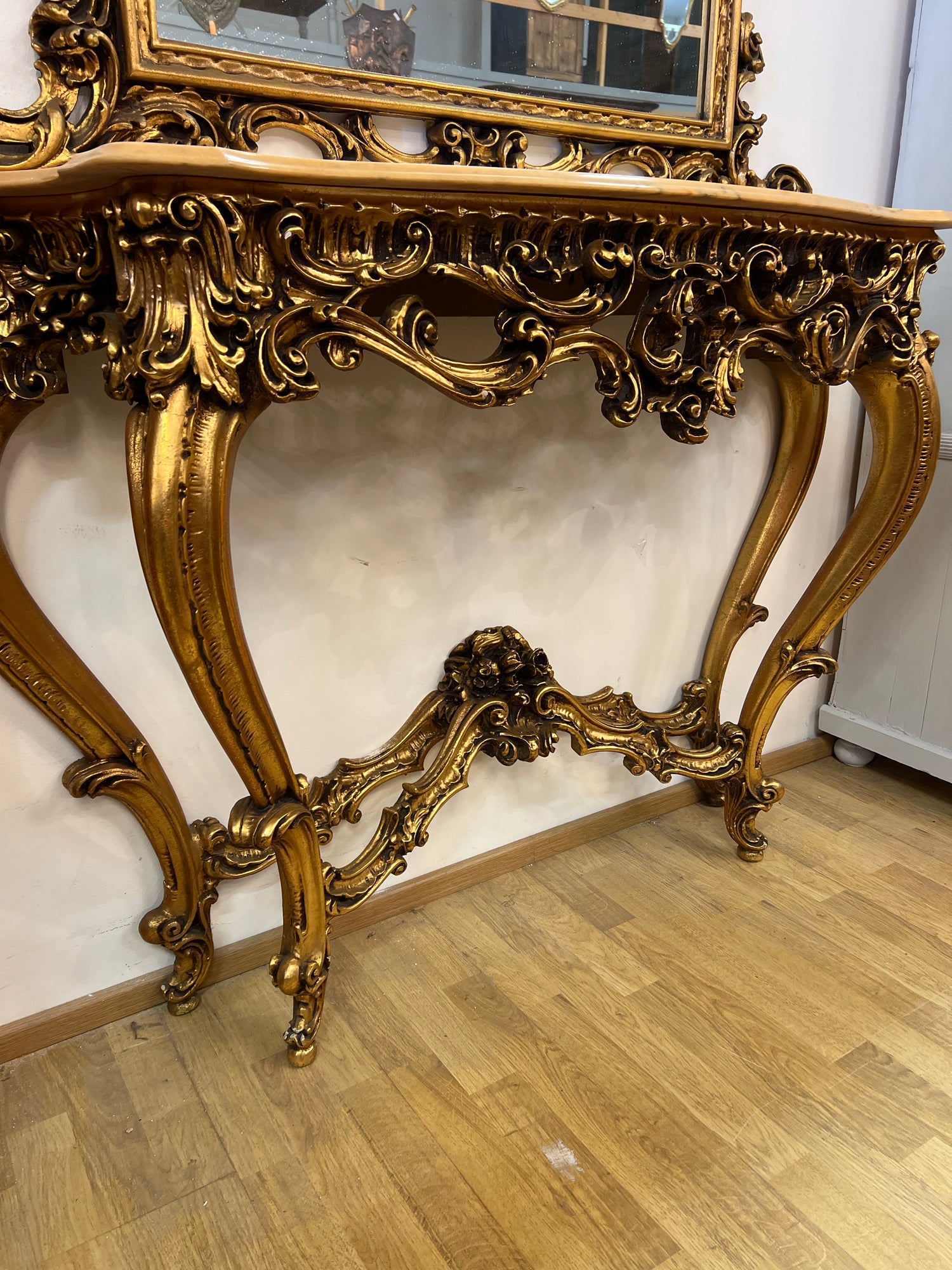 Näitä peilipöytiä on harvoin tarjolla! NYT ON!! Aivan upea rokokoo peili konsoli! Marmori kannella ja huippukuntoisella peilillä! Pientä patinaakin saattaa löytää😍 Olkaa hyvät!
