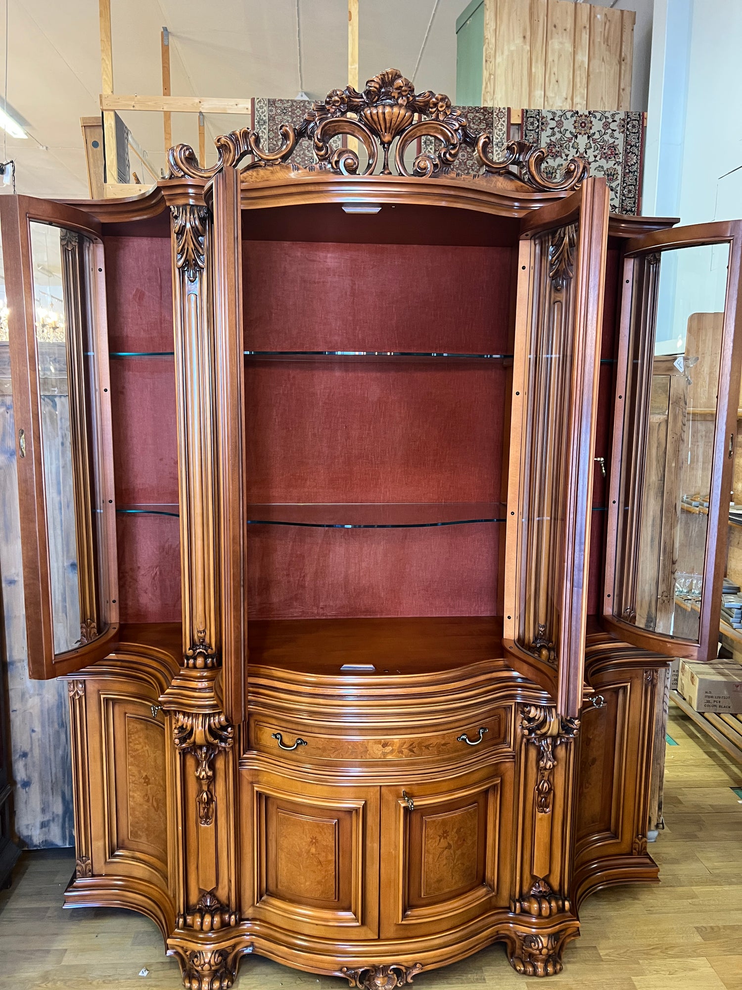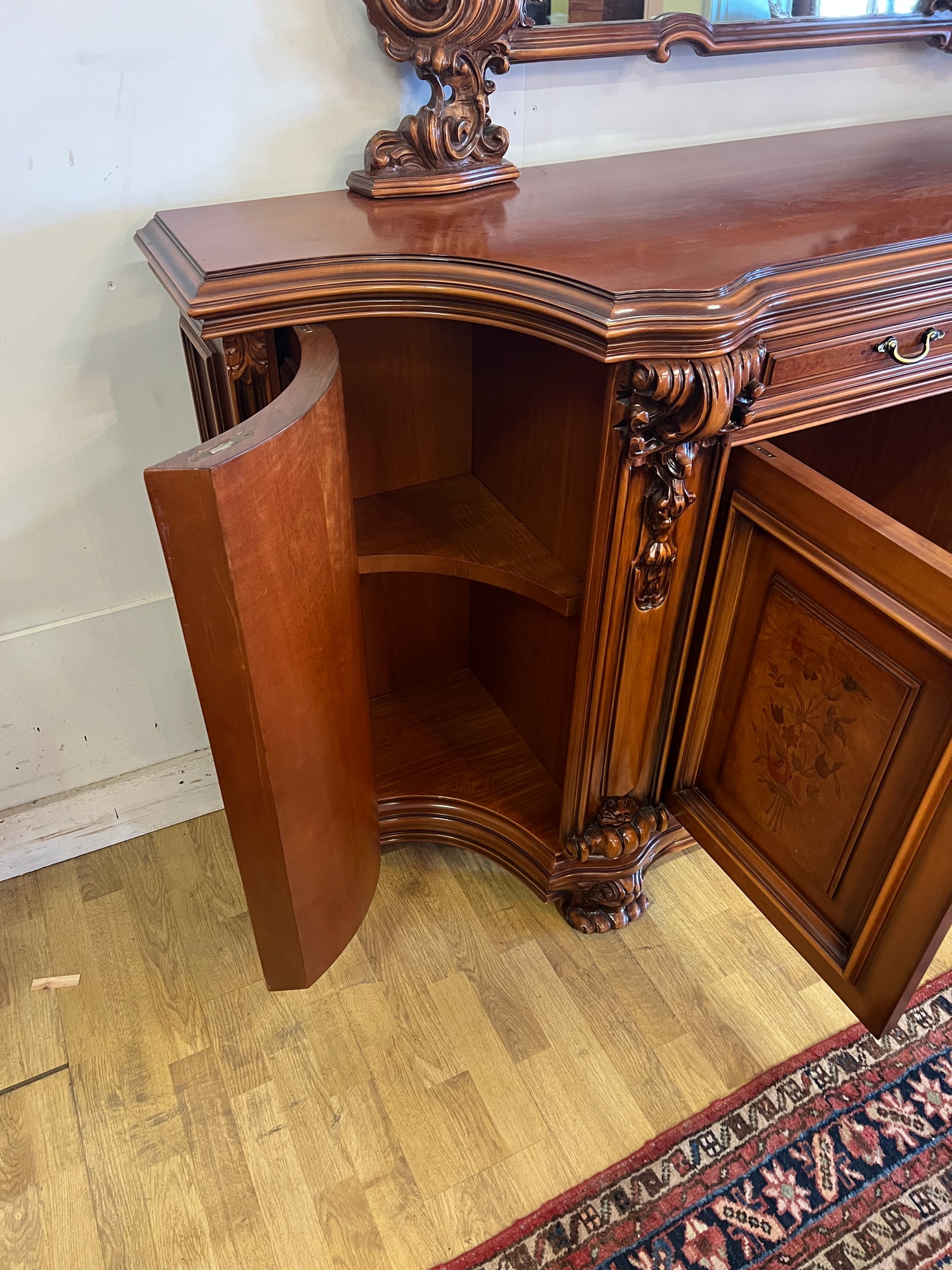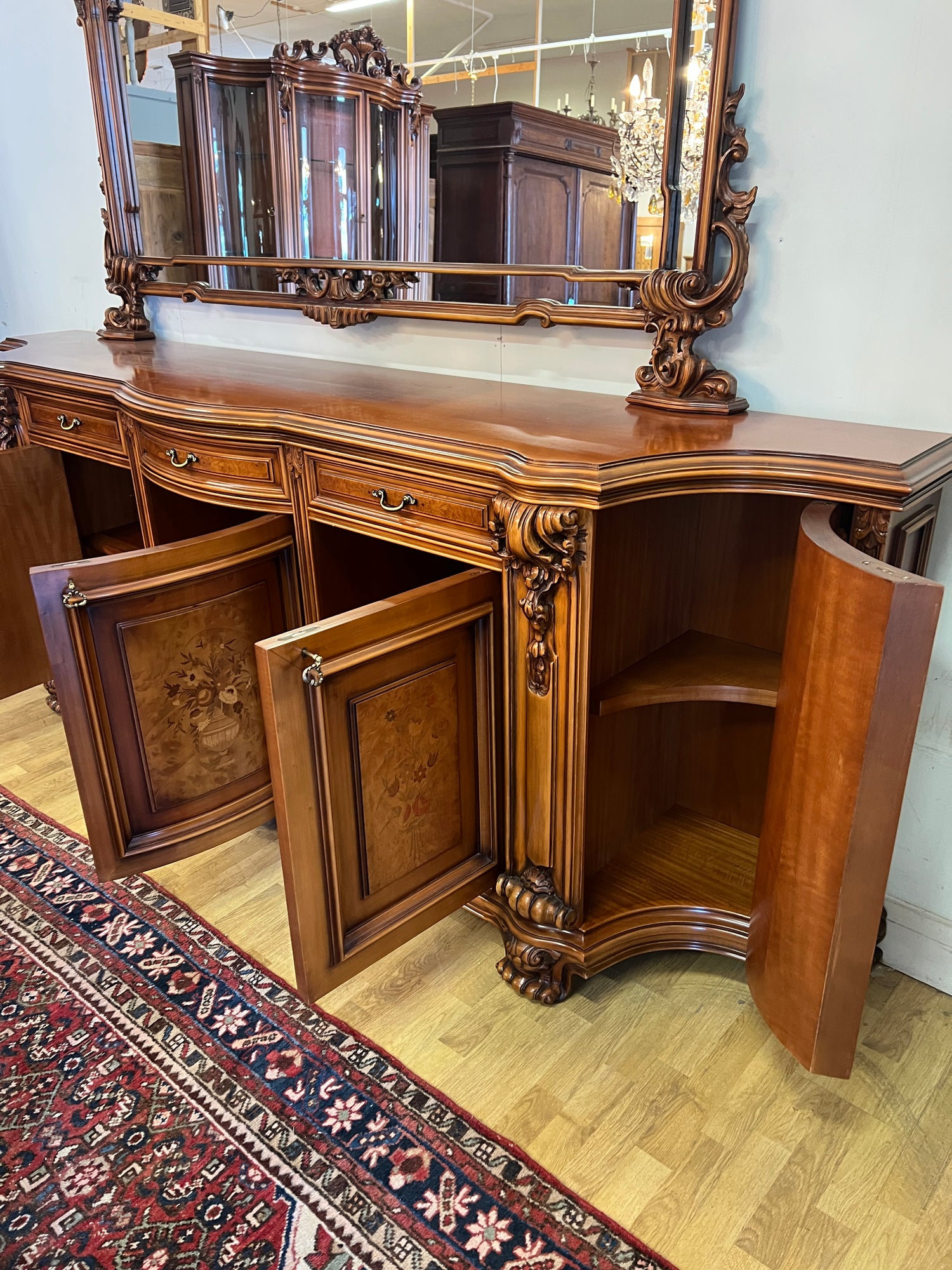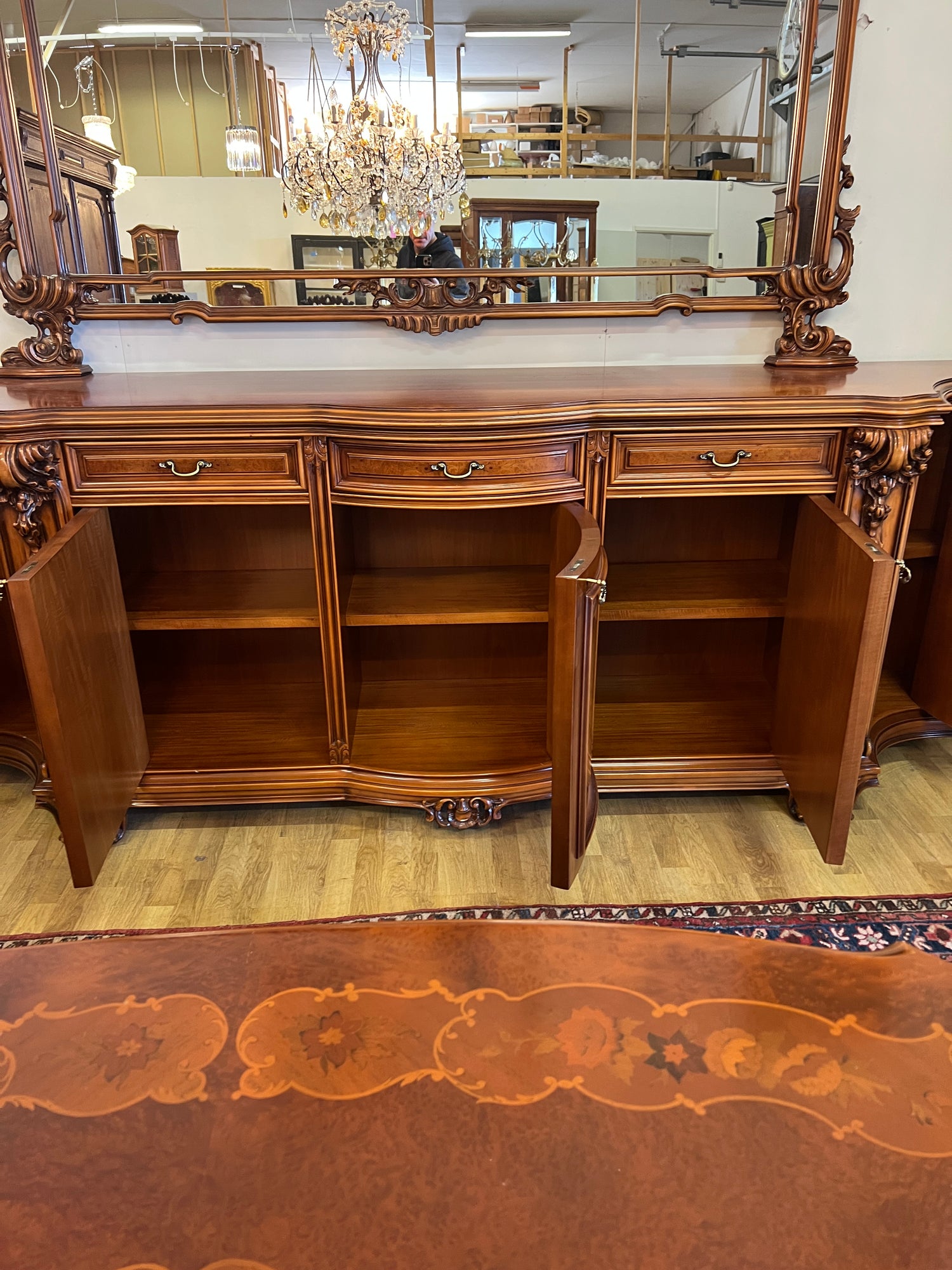 NYT ON TILAISUUS!!! Erittäin harvoin tarjolla oleva italialainen ruokasalinkalusto. Tästä ei laatu parane. On lohenpyrstoliitosta, intarsiatyötä, fasettihiottuja laseja ym ym ym… Todella hienossa kunnossa oleva kokonaisuus. Kaikki lukot toimii moitteetta, avaimet kaikkiin oviin tallessa.