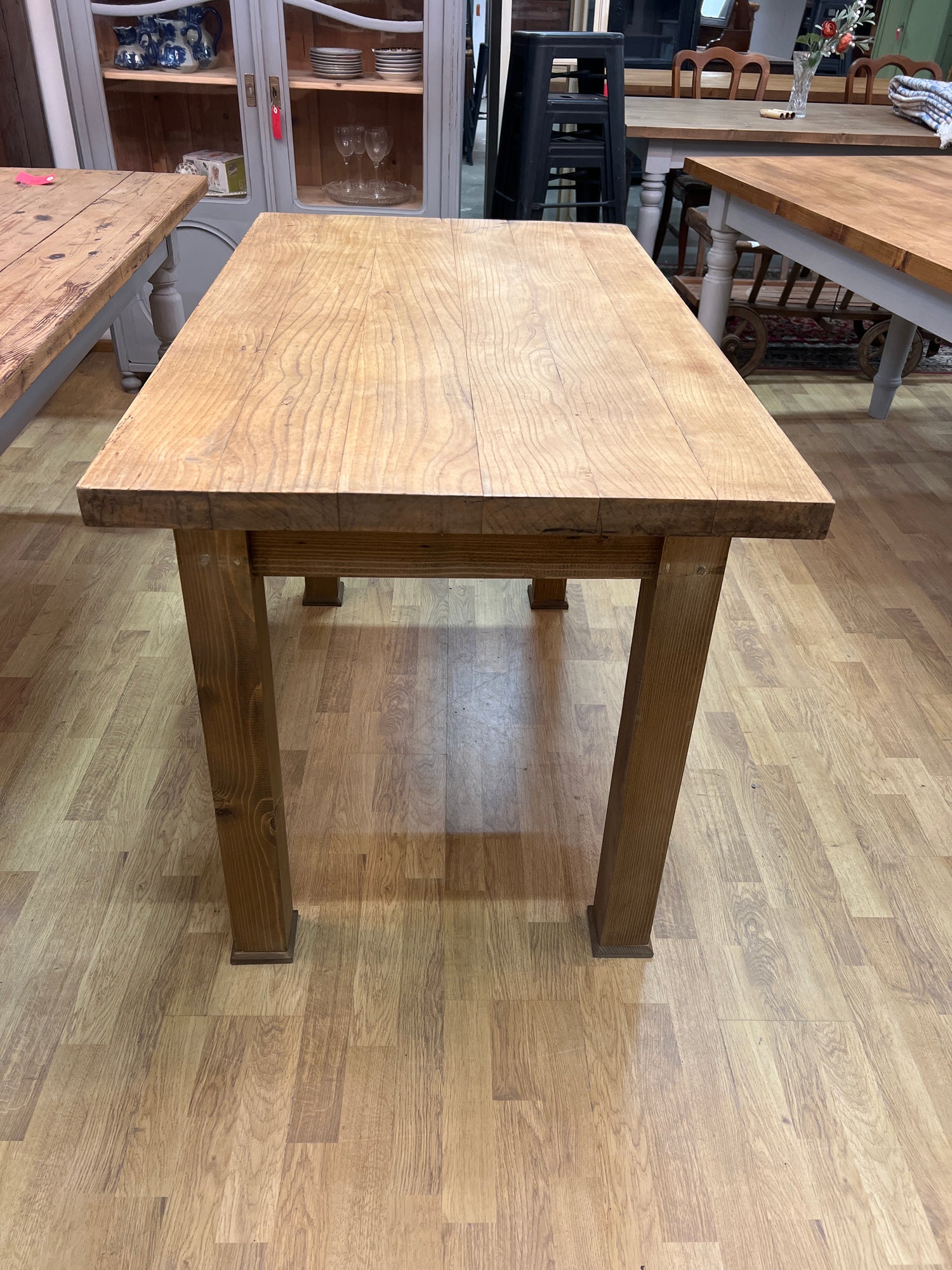 Kaunis suoralinjainen ruokapöytä. Todella hienossa kunnossa, tukeva, jämäkkä ja painava. Kovaa puuta!