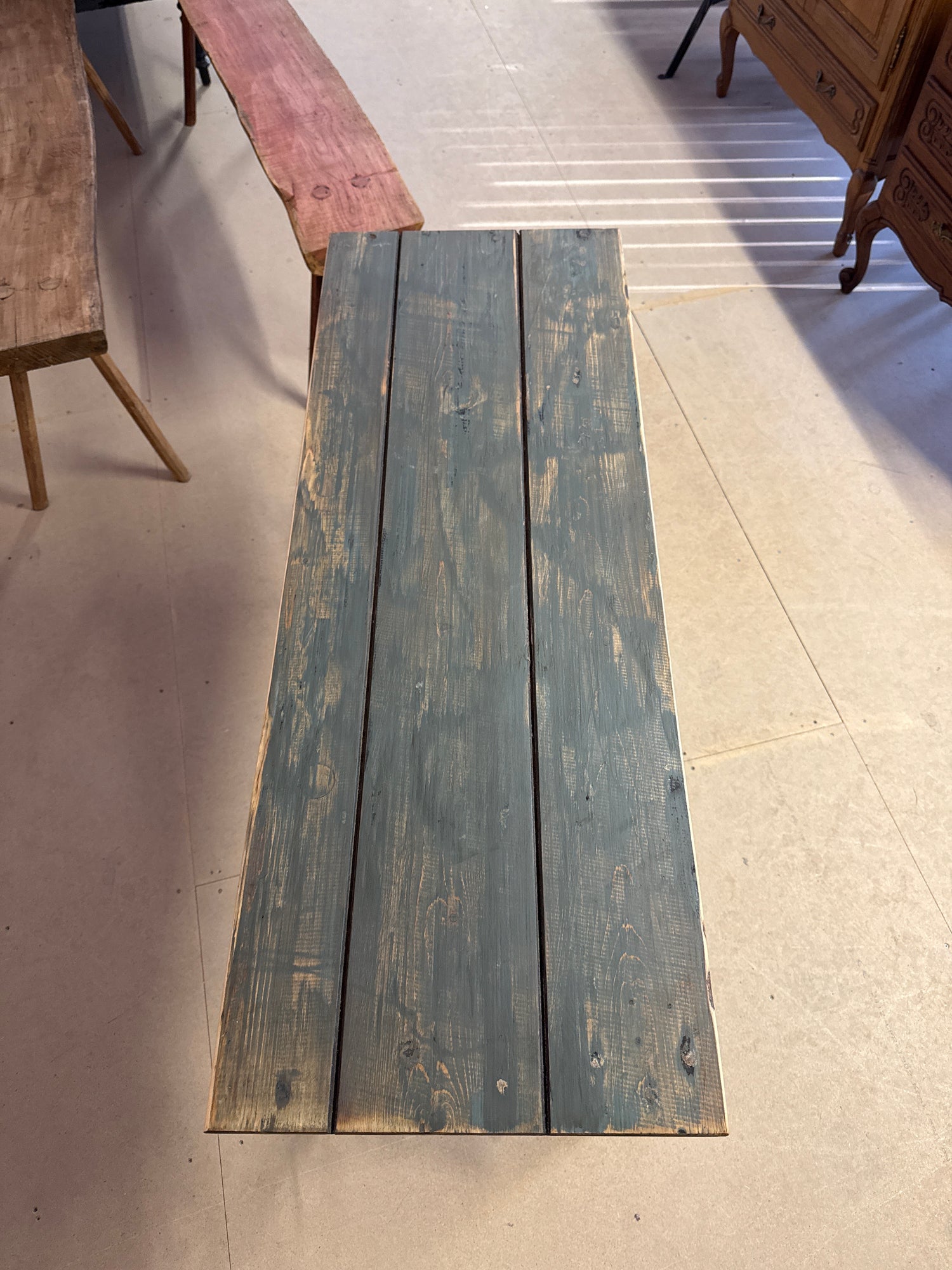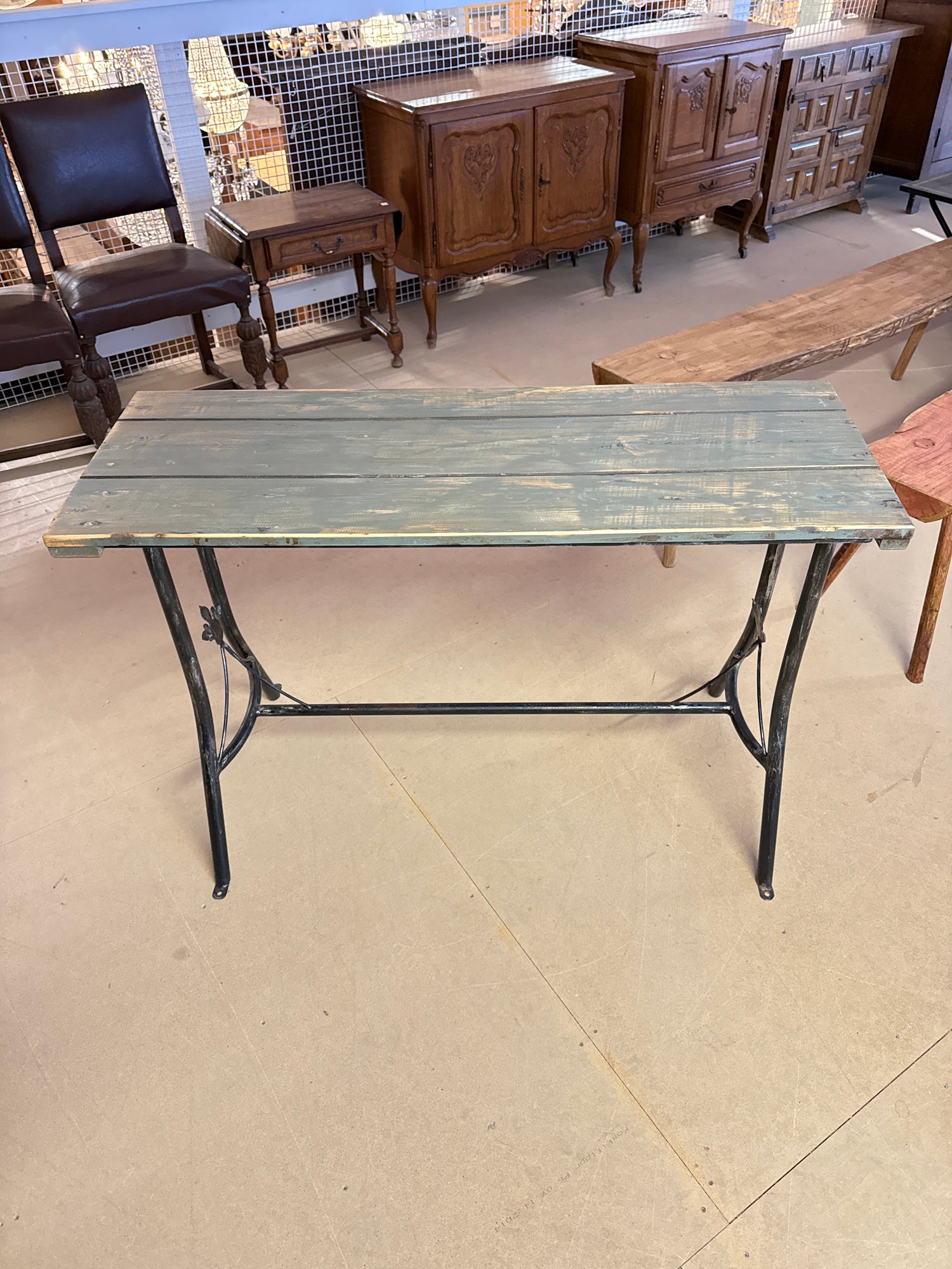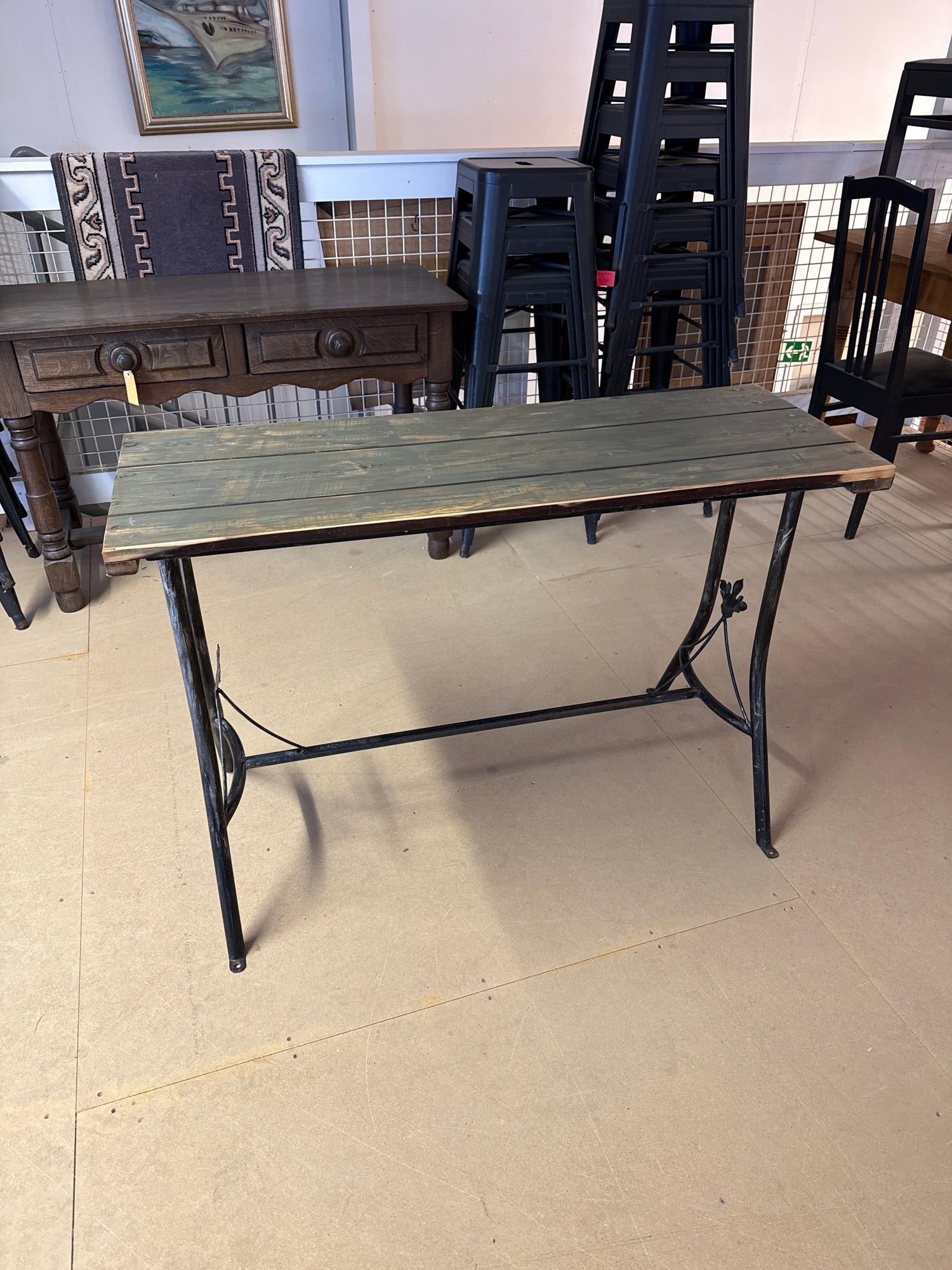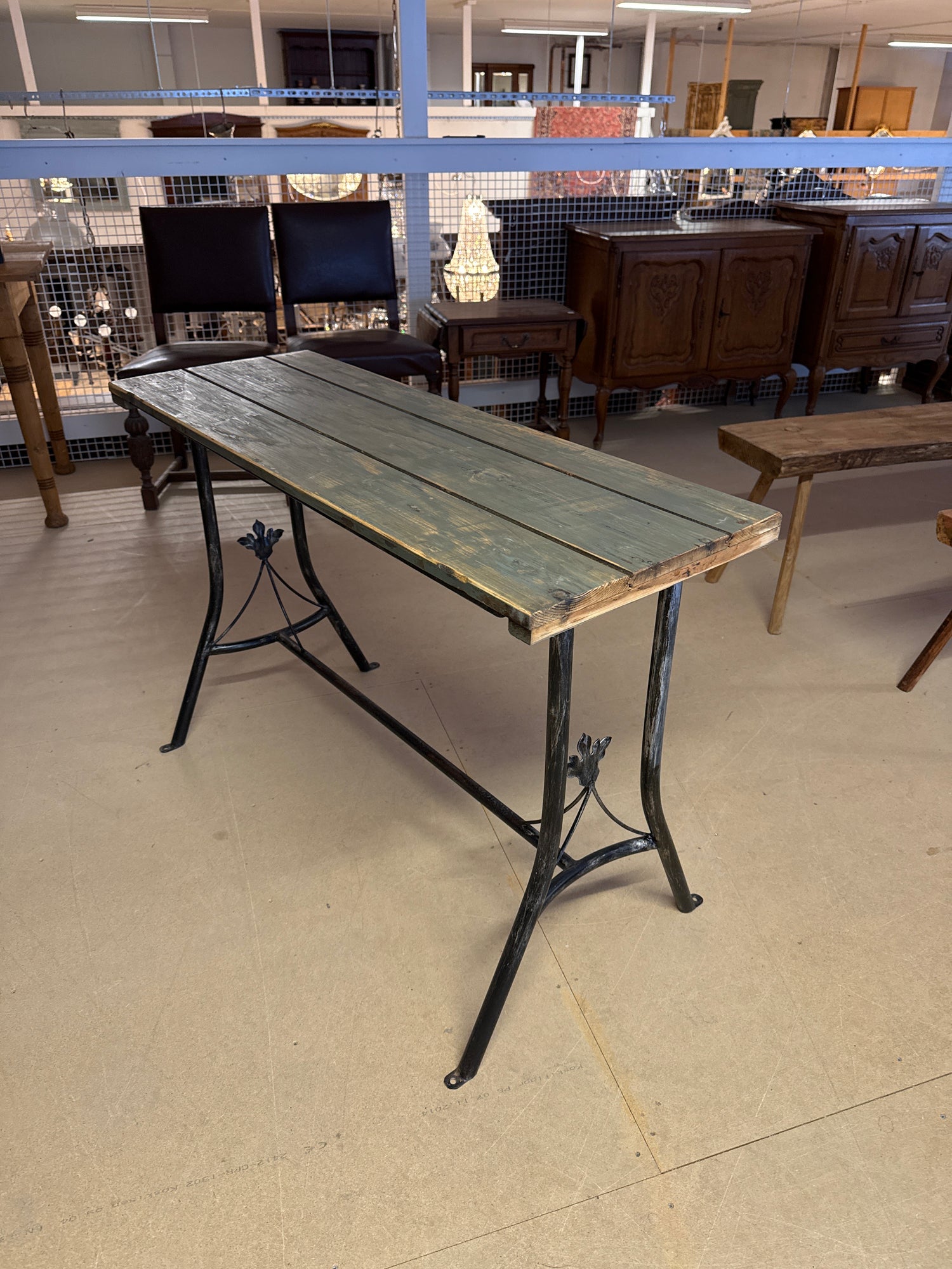 Upea metallijalkainen sivupöytä/ pöytä P.112cm L.41cm, K.74cm on jälkitoimituksessa ja toimitetaan heti, kun se on saatavilla.