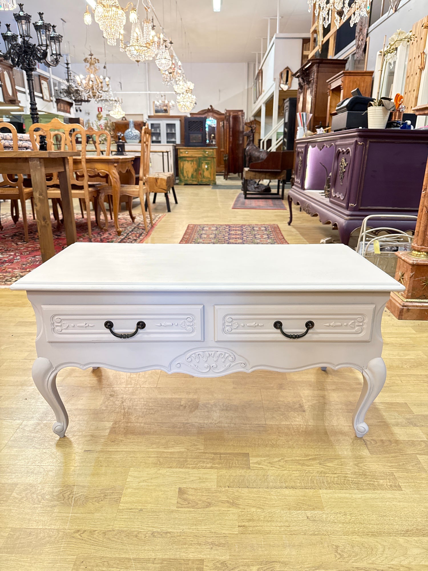 Huikea ja kaunis tv-tasoksi sopiva, tai penkinksi, kukkapöydäksi…mikä vain. Erittäin upea vaalea sävy jossa pientä patinaa havaittavissa. Tämä kaluste on 1950-60 luvulta Ranskasta ja se on suoraan käyttöön valmis.