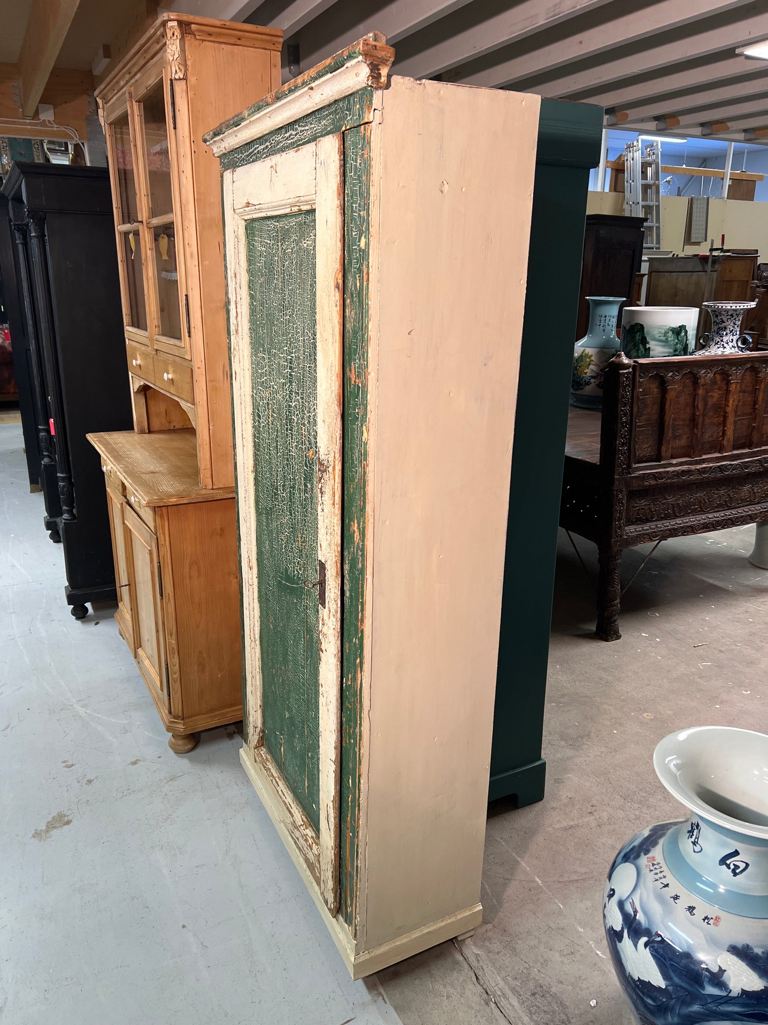 Erittäin ”litteä” vai 35cm syvä(ulkosyvyys) vaatekaappi hyllyillä. Kaappi on hienosti patinoitunut. Kaappi toimii hienosti ja on suoraan käyttöön valmis! Tästä tukeva ja jämäkkä kaappi nopeimmalle😍