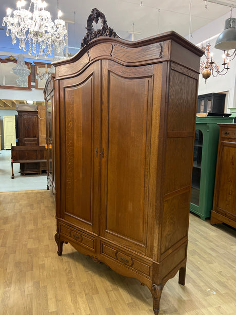 990 €Yksikköhinta /Ei saatavillaKaunis rokokoo tammivaatekaappi L. 147cm, S. 60cm ja K. 233cm.