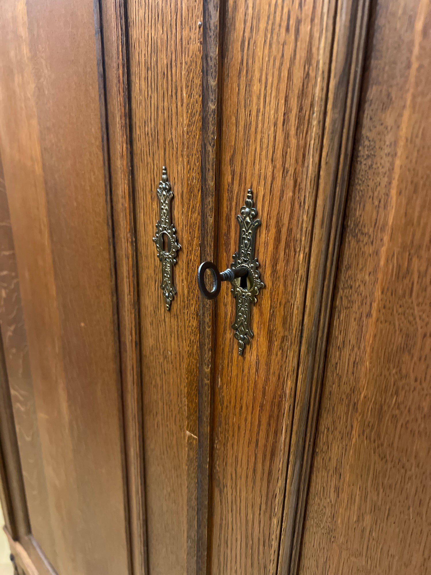 Upea rokokoo vaatekaappi tammesta. Kaappi on 1920-luvulta belgian bryggestä. Kaappi toimii hienosti niinkuin pitääkin. Kaappi on helppo purkaa osiin ja kasata uudelleen. Sen saa toimitettua ahtaastakin tilasta sisään osina. Kaapissa on iän tuomaa patinaa ja kulumaa havaittavissa😍