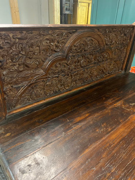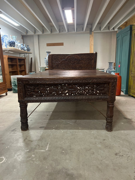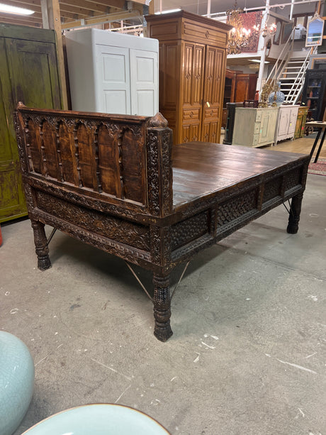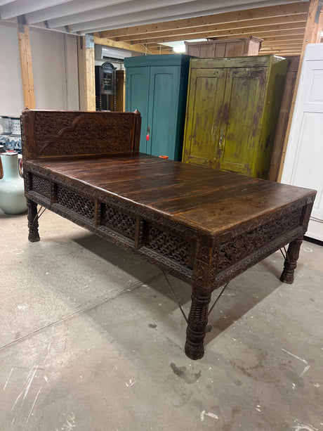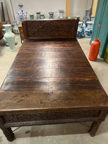Huikea 1800-luvun laveri sänky pit.214cm, lev. 133cm ja K. 123cm. Sänkyosan korkeus on 79cm