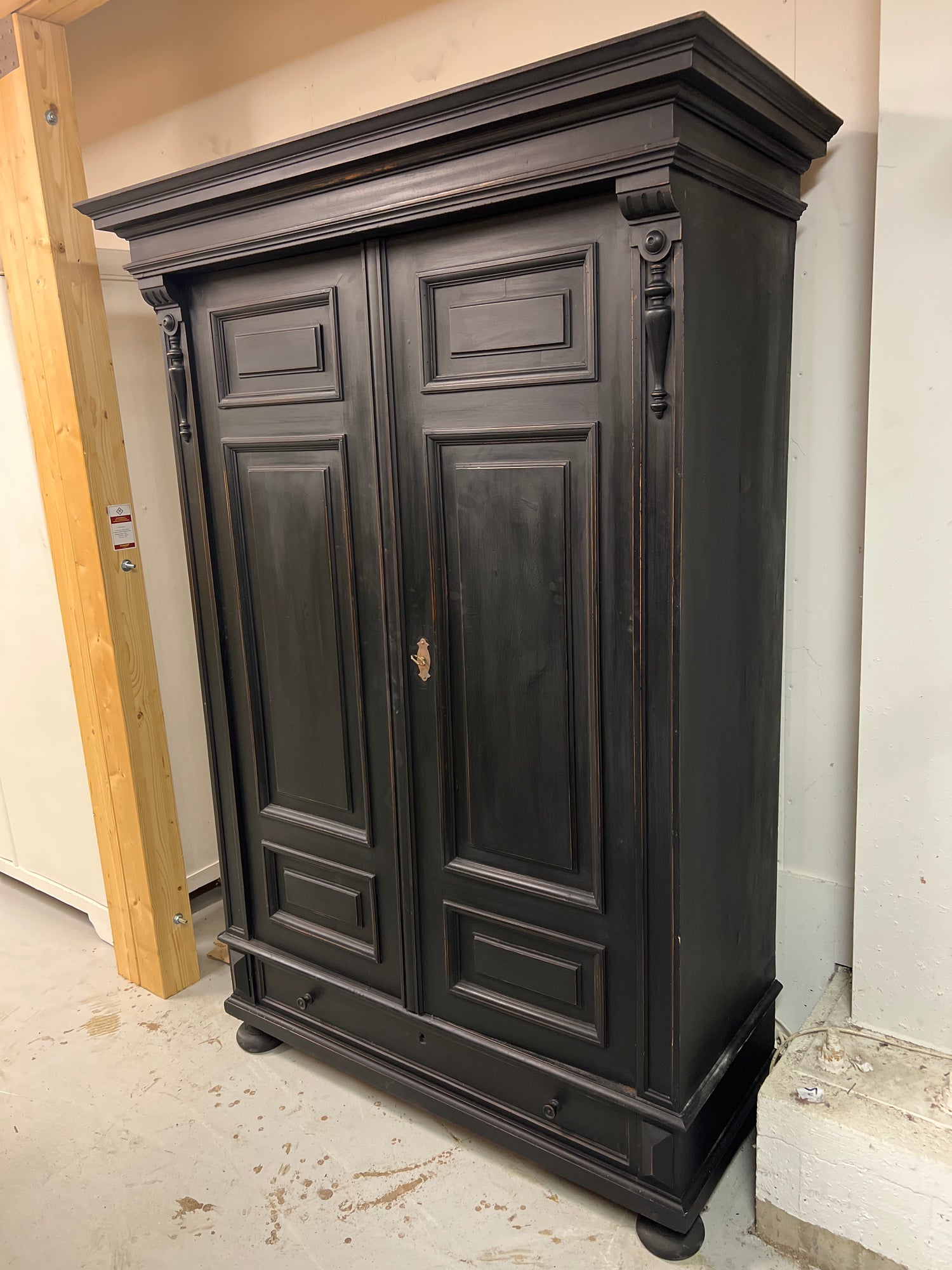Hieno musta vaatekaappi! Kaappi toimii todella hienosti ja on suoraan käyttöön valmis. Kaapissa on iän tuomaa patinaa ja kulumaa. Kaappi on tukuva, jämäkkä ja hajuton😍 Tästä olkaa hyvä👍