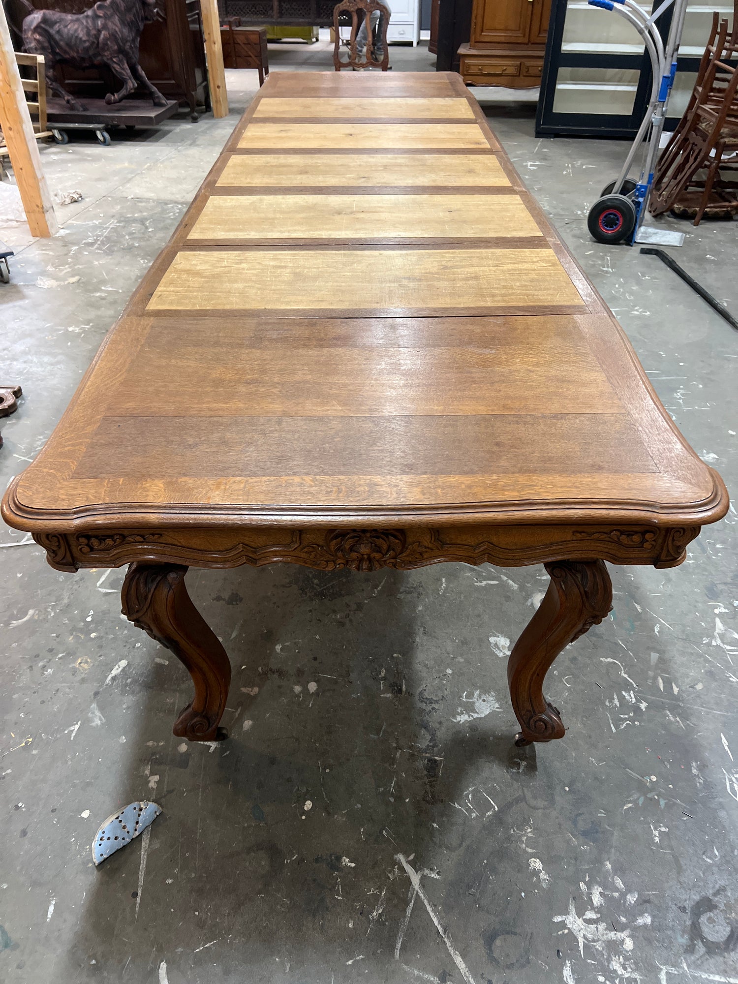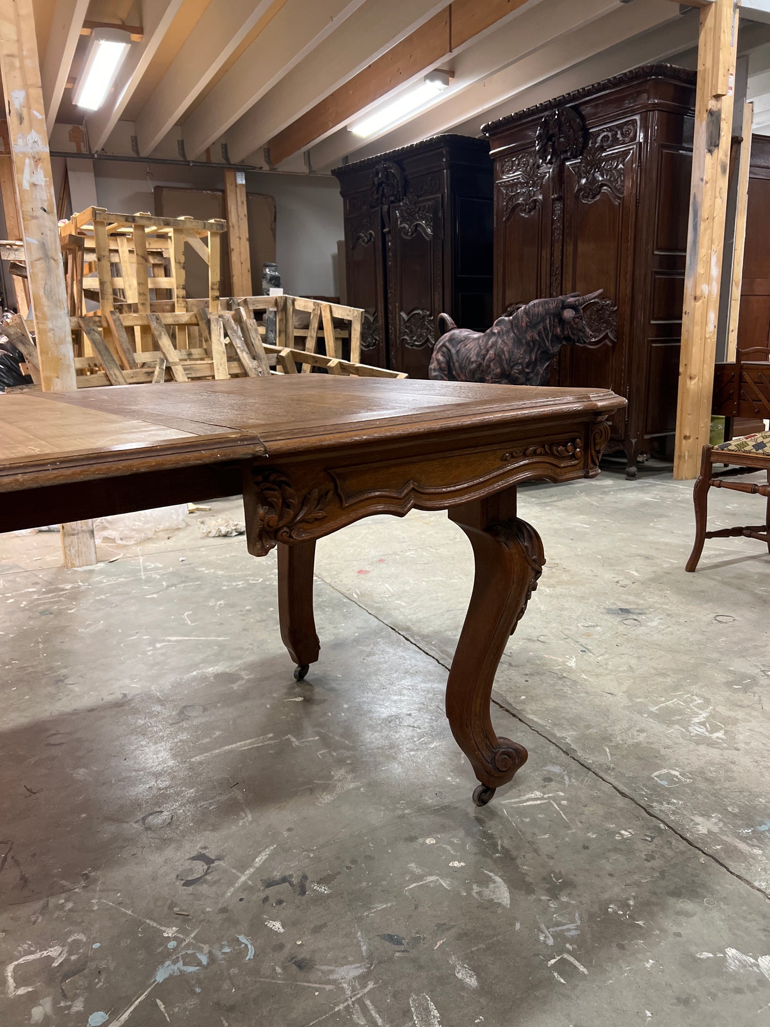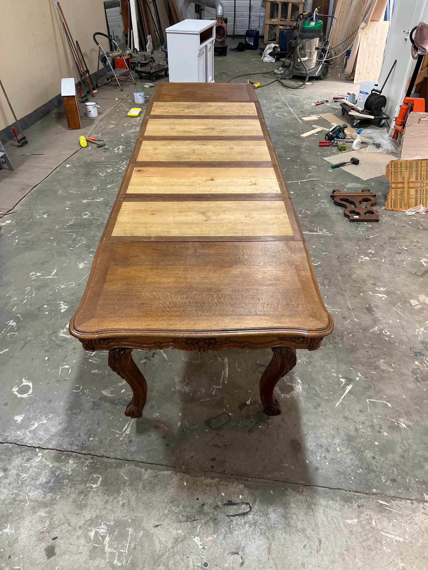 Hurjan hieno rokokoo ruokailupöytä. Pöydässä on kaikkiaan mahdollisuus 5:teen jatkopalaan. Pöytä venytettynä kaikkein pisimmilleen on n.380cm pitkä😍. Tämän pöydän ympärille mahtuu syömään jo isompikin porukka!