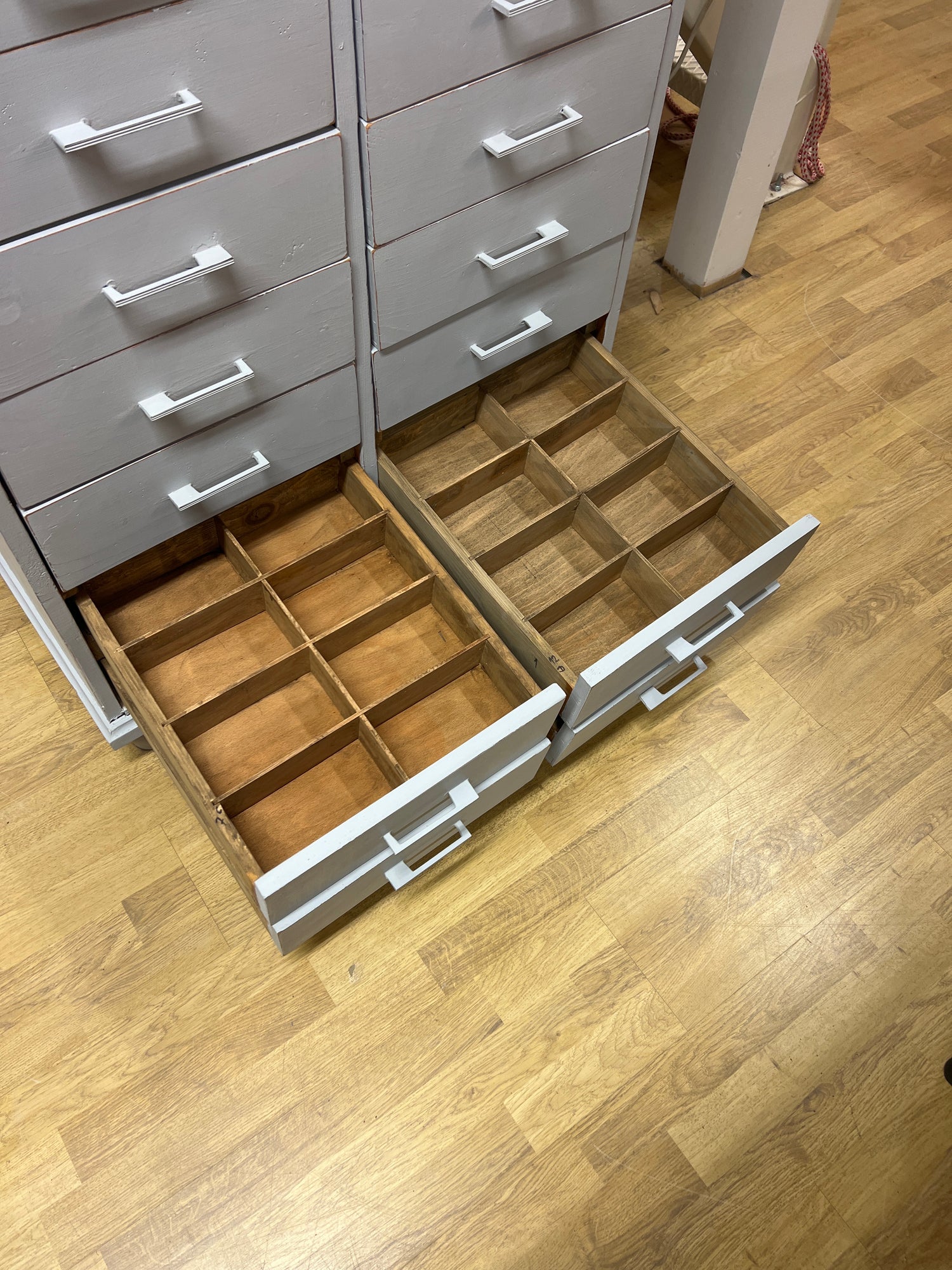 Upea lokerikko 22:lla laatikolla. Kaikki laatikot luistaa hienosti. Laatikot on jaettavissa välilevyillä erilaisiin tiloihin.. hienosti toimiva, hajuton, tukeva ja siisti! Tästä harvinainen lokerikko😍