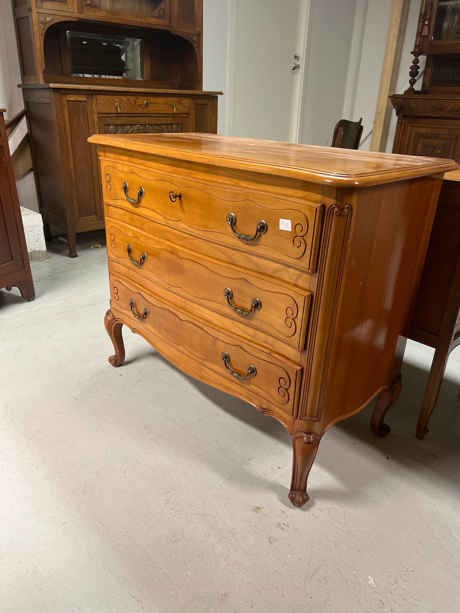 Kaunis ja todella laadukkaasti valmistettu rokokoo vetolaatikko senkki! Huippukuntoinen ja siisti. Lievää ajan patinaakin löytyy😍