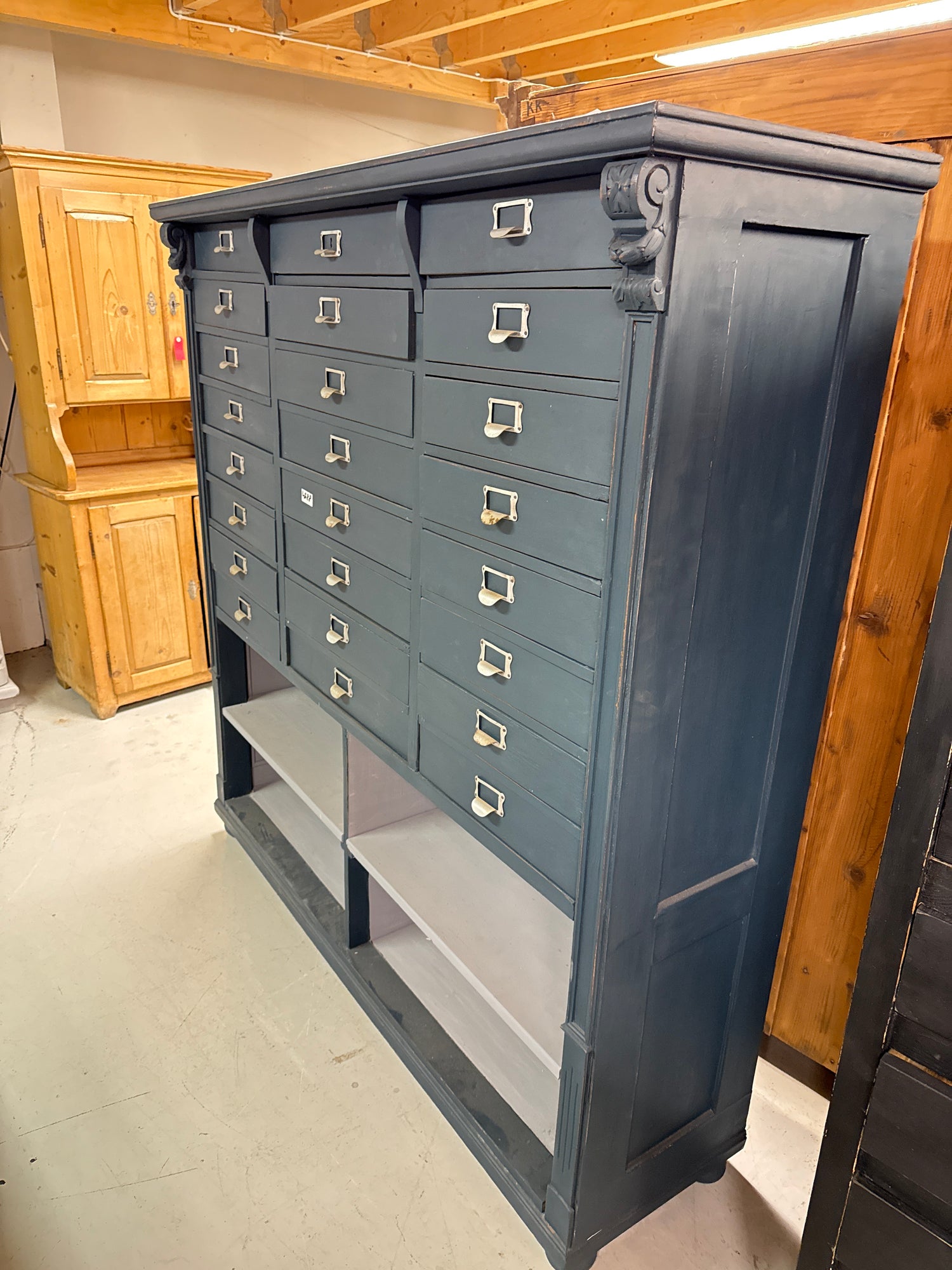 Kaunis lokerikko, missä avokaapit alhaalla. Kaluste on noin 100 vuotta vanha ja siinä on kevyttä patinaa. Toimii ja pelaa, suoraan käyttöön valmis.