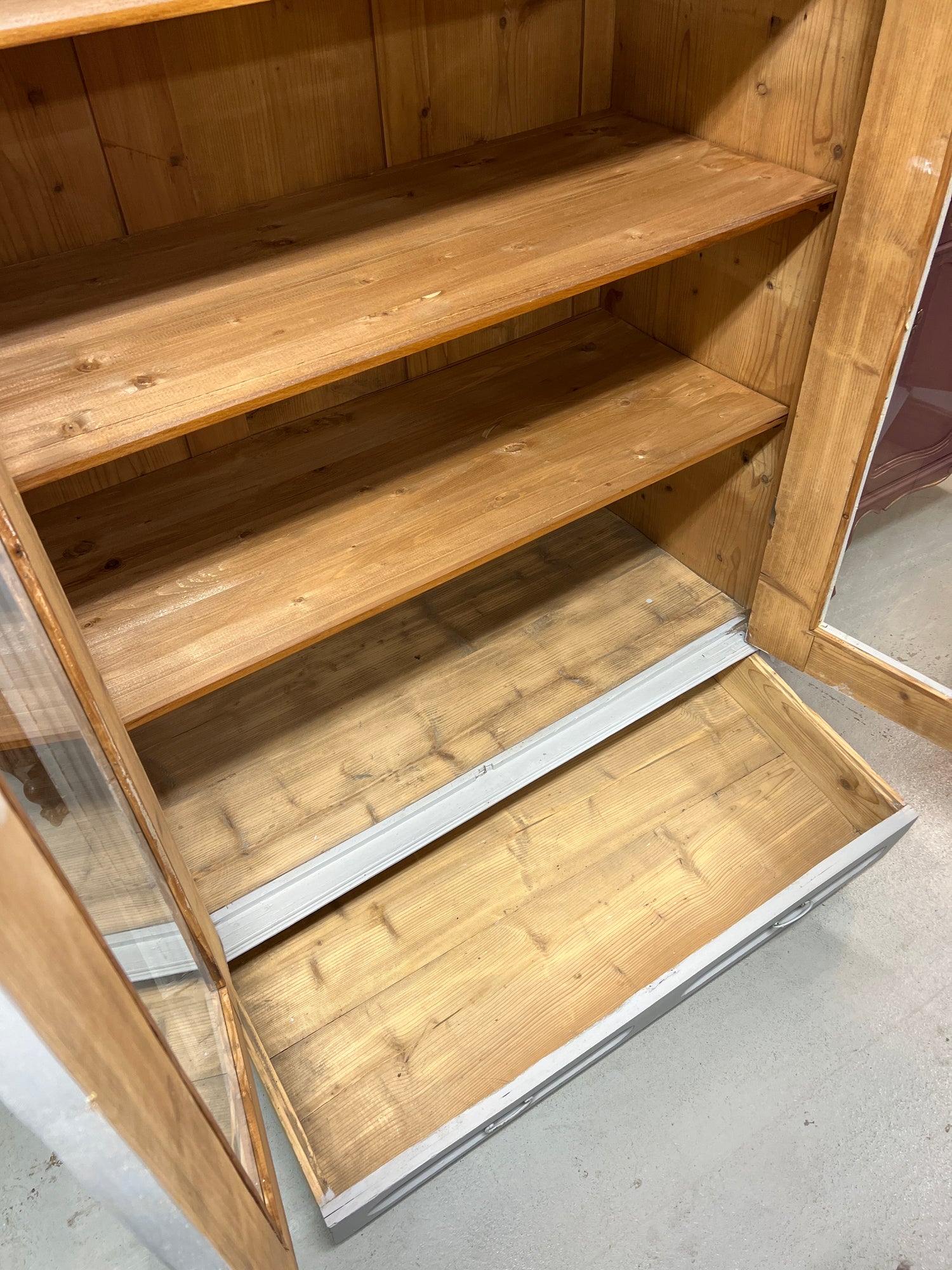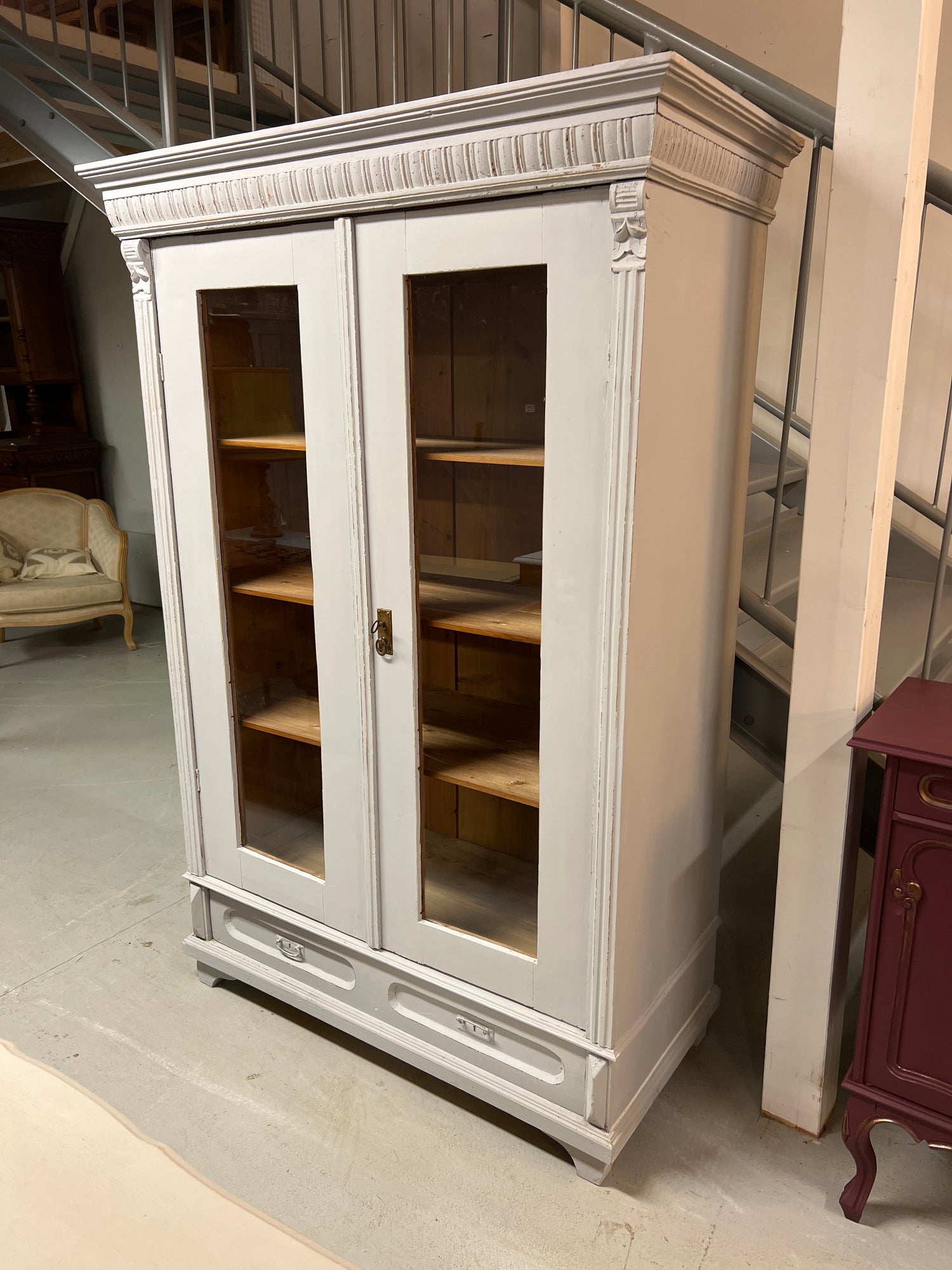 Kaunis vaalean harmaa vitriinikaappi kirjoille, astioille, keräily esineille tai mille vaan.. Kaappi toimii todella hienosti ja on ikäisekseen tosi siisti. Kaappi on 1910-luvun unkarista. Kaapissa on iän tuomaa patinaa ja kulumaa havaittavissa. Massivipuinen, tukeva ja jämäkkä kaappi suoraan käyttöön..😍
